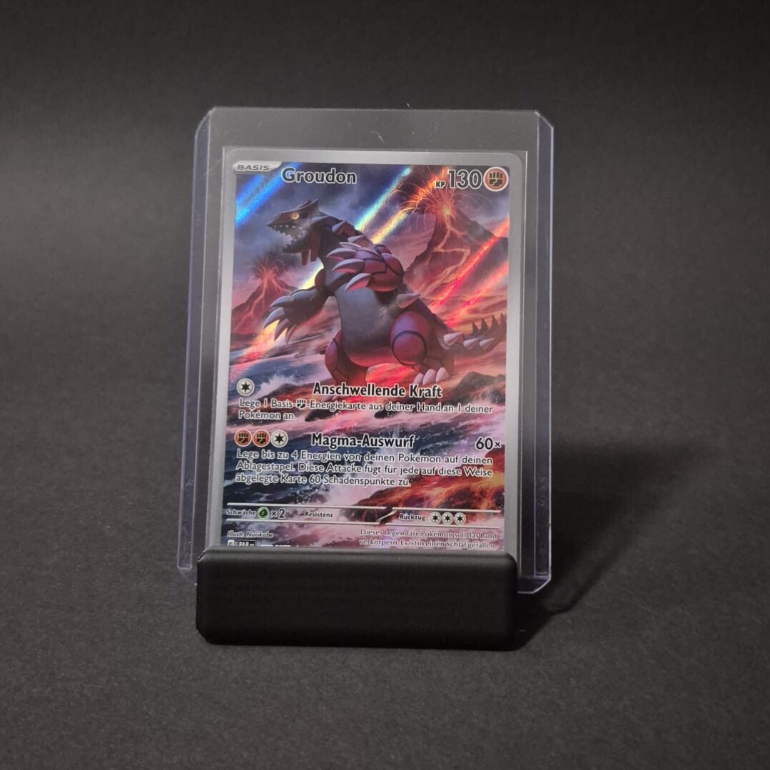 Durch das stabile Design ist der Ständer perfekt geeignet für Slabs, One Touch Cases und Toploader. So kannst du wertvolle oder besondere Karten optimal präsentieren.